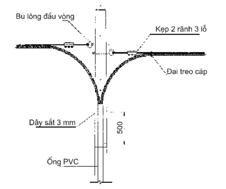 Hình C.10: Hệ thống nối đất dây thép bện treo cáp