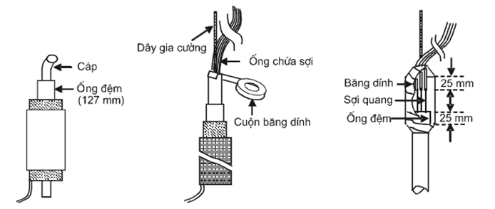 f) Việc hàn nối các sợi quang theo các trình tự đã nêu ở trên. g) Bôi mỡ lên thành của vỏ trong măng sông.