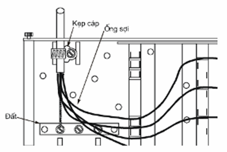 b) Ống dẫn cáp lên tủ dùng loại ống PVC cứng hoặc ống cao su mềm. Đường kính ống được lựa chọn phù hợp với kích thước cáp đi bên trong ống.