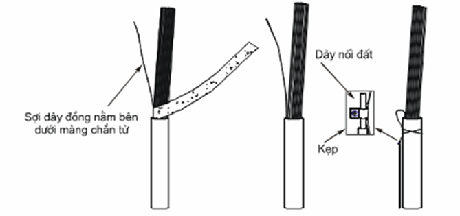 Hình C.12: Nối đất màng chắn từ đối với cáp không có sợi dây đồng bên dưới