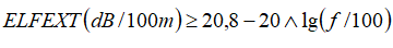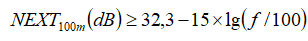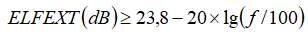 * Khi độ dài cáp được đo khác với 100 m thì quy đổi giá trị suy hao của tổng công suất xuyên âm đầu xa về độ dài 100 m theo công thức sau: