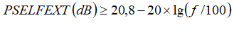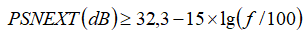 Trong đó: f là tần số tính theo MHz, và giá trị PSNEXT(1) tham khảo trong bảng sau: