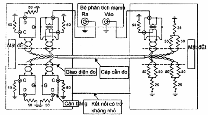 * Tại đầu xa nối 2 đầu dây với điện trở có giá trị bằng trở kháng danh định của cáp tại tần số đo thử.