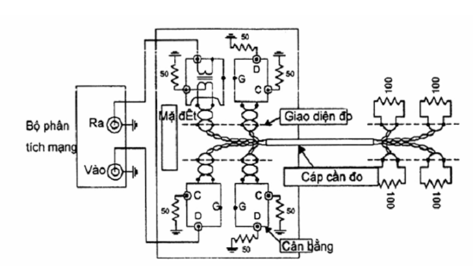 Thiết bị máy phân tích trải phổ hoặc máy đo cáp chuyên dụng bao gồm: i) Máy phát ở các tần số khác nhau; ii) Máy thu có thể đo công suất tại các tần số khác nhau; iii) Hộp điện trở mẫu.