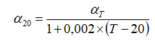 * Trong đó: aT là suy hao đo được tính theo dB/100 m; T là nhiệt độ môi trường tính bằng độ C; a20 là giá trị suy hao được hiệu chỉnh về 20 °C tính theo dB/100 m.