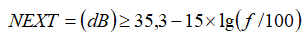 * Trong đó: K0 là suy hao công suất xuyên âm đo được tại tần số f0 và chiều dài L0; Kx là suy hao công suất xuyên âm đo được tại tần số fx; Lx = 100 m.