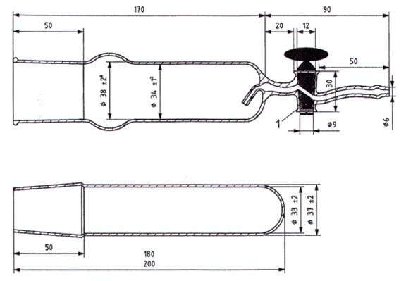 B.3.6 Ống sấy, bằng thủy tinh, có hai phần, một phần được đóng kín ở một đầu để đựng đĩa (B.3.4) và phần kia dùng để chứa cốc (B.3.5), mang một ống bán mao dẫn, có van khóa, để rút chân không. Hai phần được nối với nhau bằng khớp nối thủy tinh mài.
