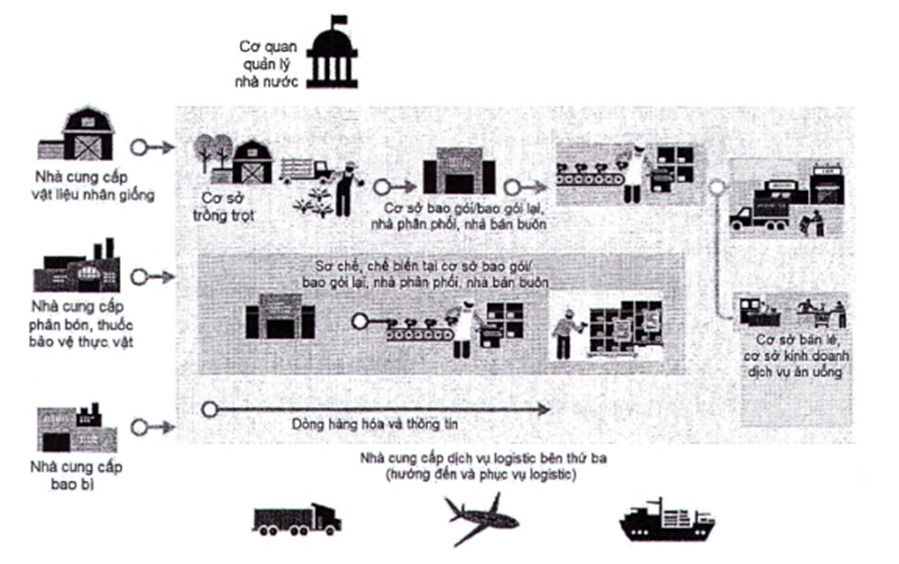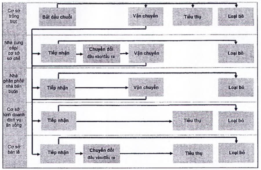 - Bao gồm tất cả các bên tham gia chuỗi cung ứng: cơ sở trồng trọt, cơ sở đóng gói/cơ sở đóng gói lại, nhà phân phối, nhà bán buôn, cơ sở bán lẻ và cơ sở kinh doanh dịch vụ ăn uống. Mỗi chuỗi cung ứng có thể được tạo thành từ một số hoặc tất cả các bên nêu trên.