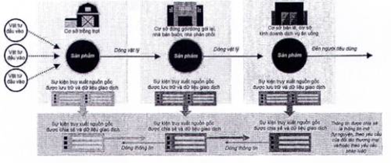 Các quá trình giữa các đối tác thương mại và thông tin/dữ liệu được trao đổi để thực hiện việc truy xuất nguồn gốc