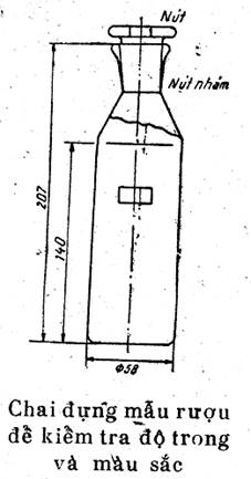 3.2. Kiểm tra độ trong và màu sắc phải dùng chai thủy tinh trong suốt, có nút nhám, khô, sạch, không có mùi lạ, có quy cách chai theo phụ lục 1 của tiêu chuẩn này.