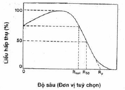 Hình 1 - Sự phân bố liều theo độ sâu điển hình đối với chùm electron