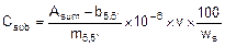 Tính nồng độ của các chất màu phụ, Csub, biểu thị bằng phần trăm khối lượng, theo công thức sau:
