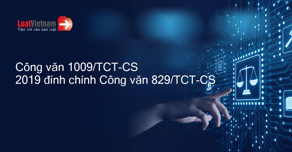 Công văn 1009/TCT-CS 2019 đính chính Công văn 829/TCT-CS