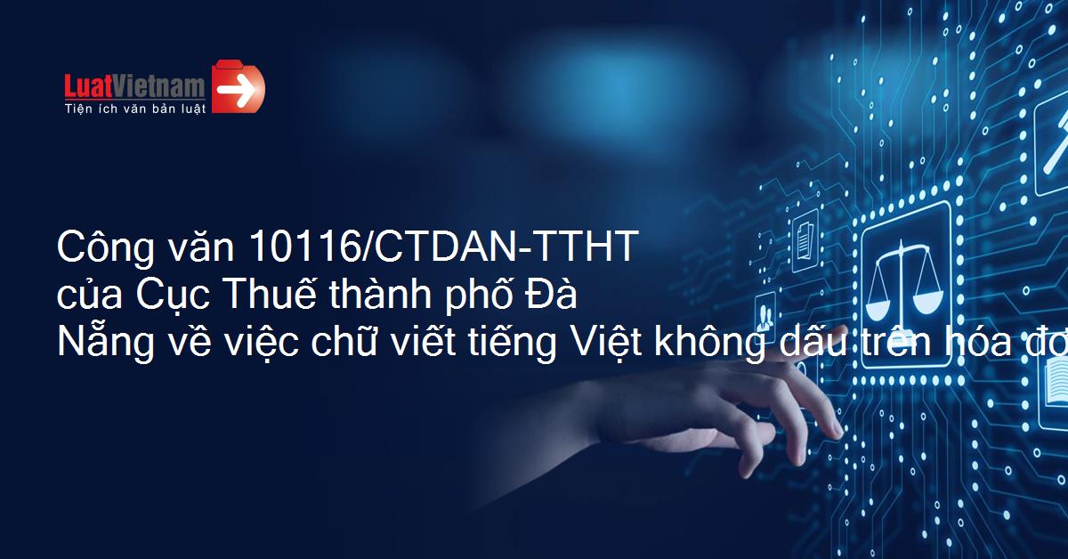 Công văn 10116/CTDAN-TTHT của Cục Thuế thành phố Đà Nẵng về việc chữ viết tiếng Việt không dấu trên hóa đơn điện tử