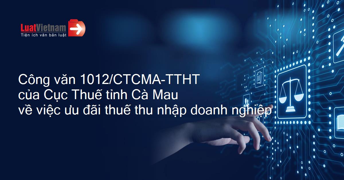 Công văn 1012/CTCMA-TTHT của Cục Thuế tỉnh Cà Mau về việc ưu đãi thuế thu nhập doanh nghiệp
