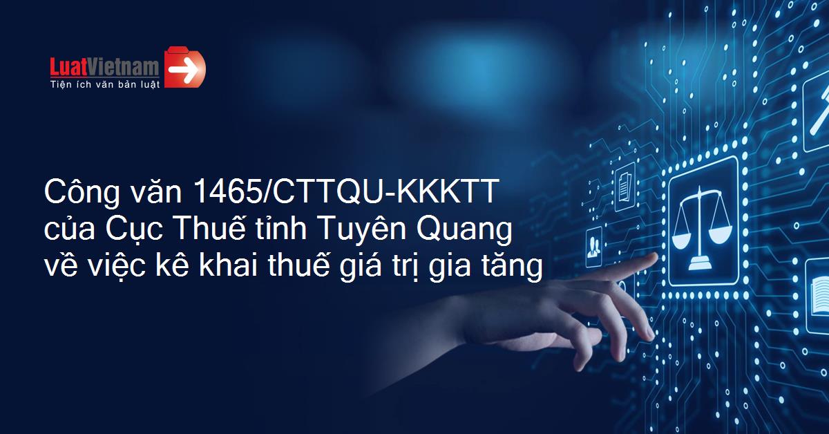 Công văn 1465/CTTQU-KKKTT của Cục Thuế tỉnh Tuyên Quang về việc kê khai thuế giá trị gia tăng