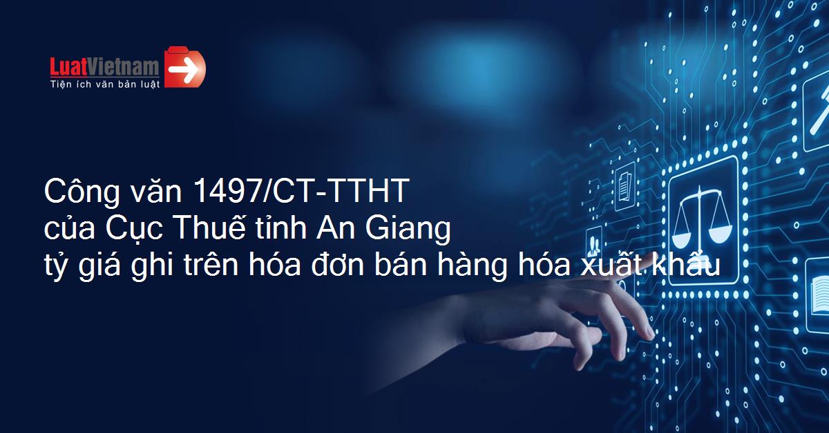 | TỔNG CỤC THUẾ CỤC THUẾ TỈNH AN GIANG ______________ Số: 1497/CT-TTHT V/v tỷ giá ghi trên hóa đơn bán hàng hóa xuất khẩu | CỘNG HÒA XÃ HỘI CHỦ NGHĨA VIỆT NAM Độc lập - Tự do - Hạnh phúc ___________________________ An Giang, ngày 04 tháng 5 năm 2023 |