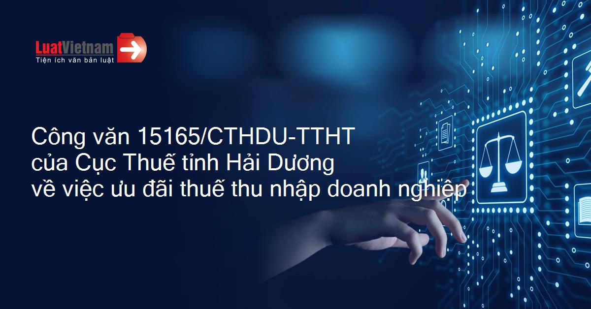 | Số hiệu: | 15165/CTHDU-TTHT | Ngày đăng công báo: | Đang cập nhật |