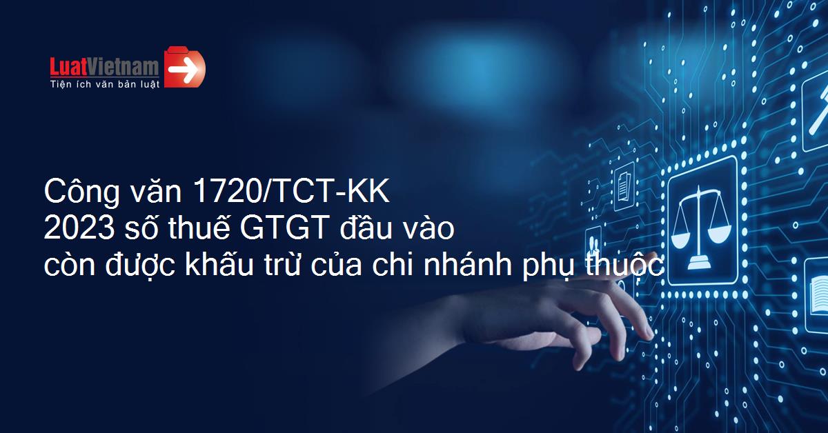 Công văn 1720/TCT-KK 2023 số thuế GTGT đầu vào còn được khấu trừ của chi nhánh phụ thuộc