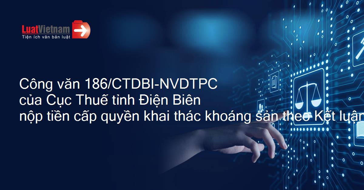 | Số hiệu: | 186/CTDBI-NVDTPC | Ngày đăng công báo: | Đang cập nhật |