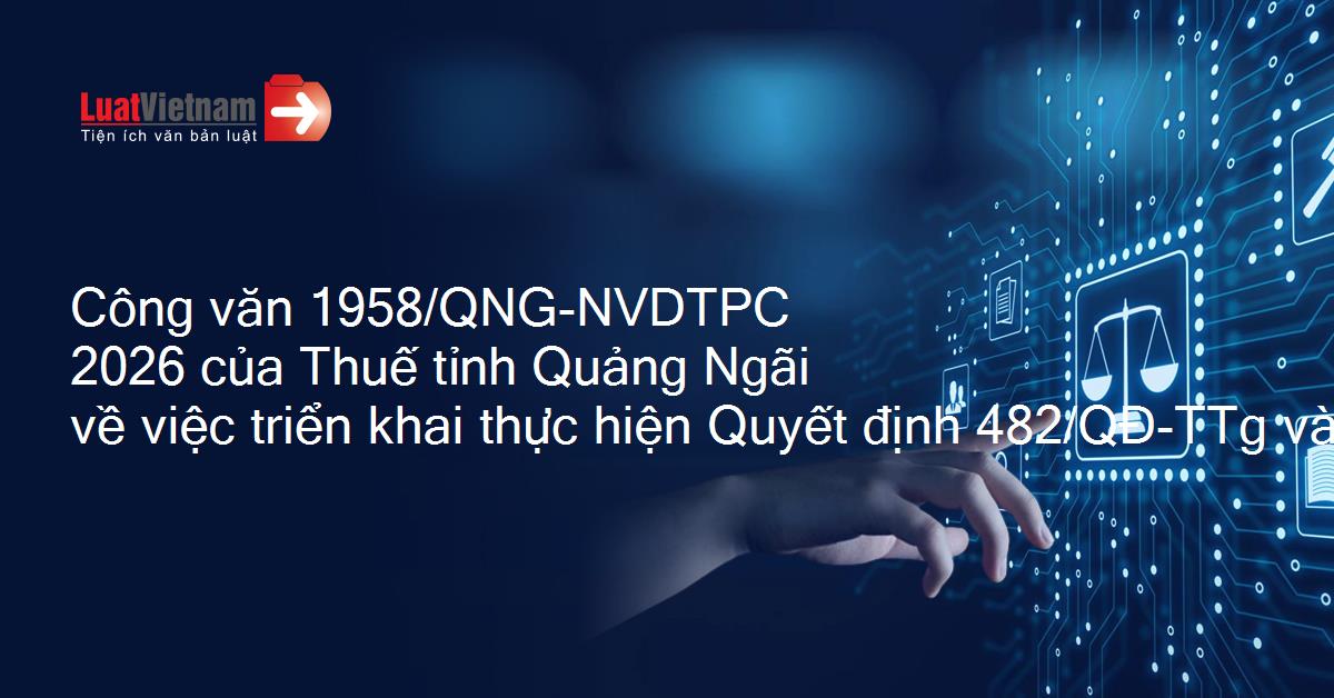 Công văn 1958/QNG-NVDTPC 2026 của Thuế tỉnh Quảng Ngãi về việc triển khai thực hiện Quyết định 482/QĐ-TTg và Công điện 07/CĐ-CT về áp dụng thuế bảo vệ môi trường, thuế giá trị gia tăng, thuế tiêu thụ đặc biệt đối với xăng, dầu và nhiên liệu bay