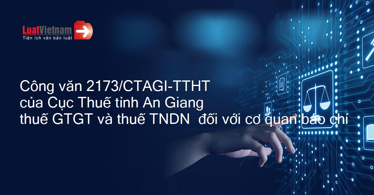 Công văn 2173/CTAGI-TTHT của Cục Thuế tỉnh An Giang thuế GTGT và thuế TNDN đối với cơ quan báo chí