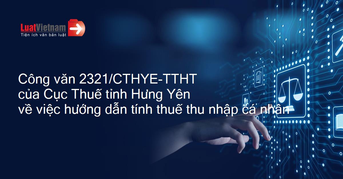 Công văn 2321/CTHYE-TTHT của Cục Thuế tỉnh Hưng Yên về việc hướng dẫn tính thuế thu nhập cá nhân