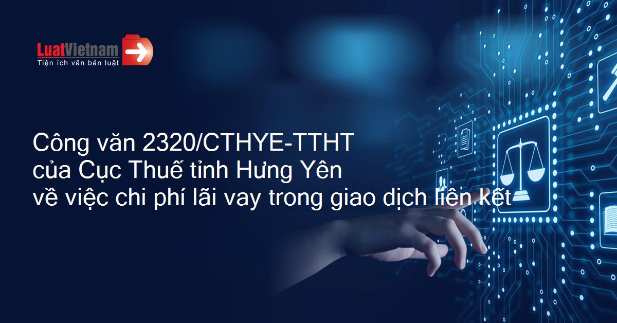 | Số: 2320/CTHYE-TTHT V/v chi phí lãi vay trong giao dịch liên kết | Hưng Yên, ngày 19 tháng 5 năm 2023 |