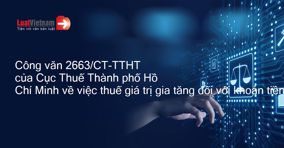 Công văn 2663/CT-TTHT của Cục Thuế Thành phố Hồ Chí Minh về việc thuế giá trị gia tăng đối với khoản tiền thưởng