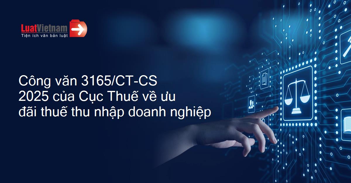 Công văn 3165/CT-CS 2025 của Cục Thuế về ưu đãi thuế thu nhập doanh nghiệp