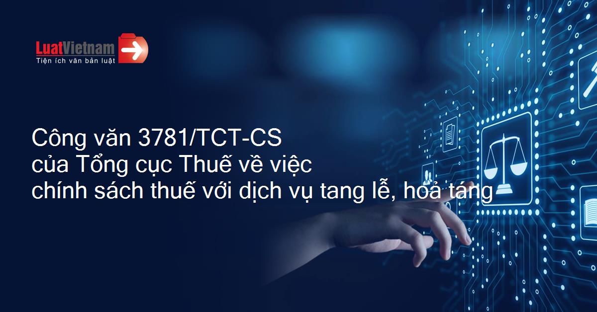 | Số hiệu: | 3781/TCT-CS | Ngày đăng công báo: | Đang cập nhật |