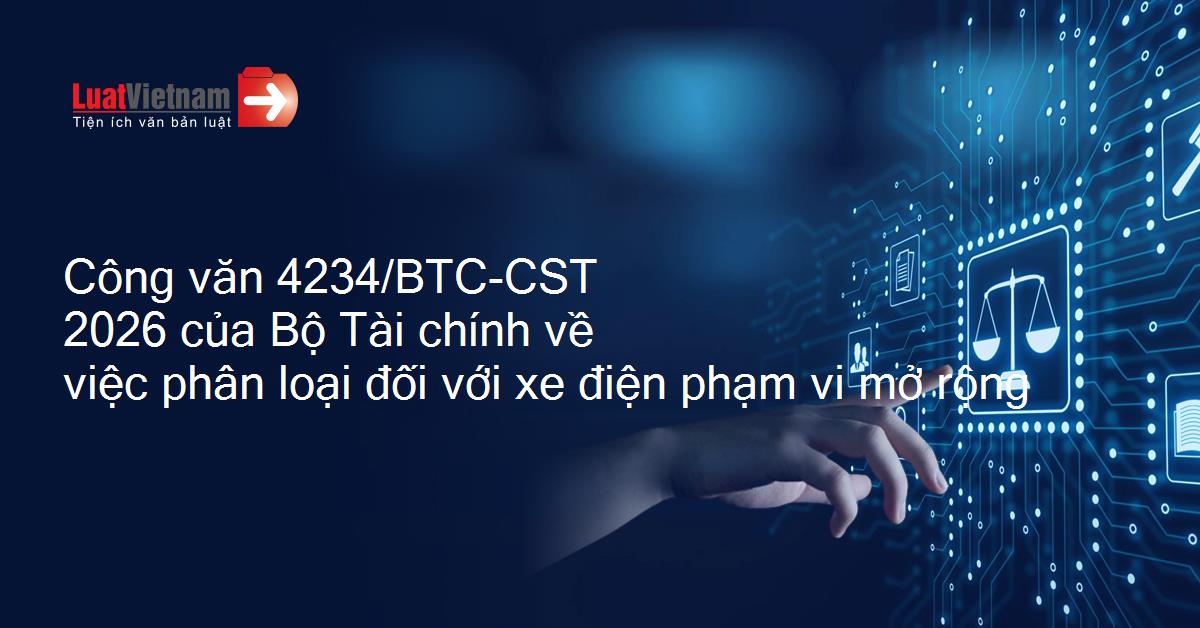 Công văn 4234/BTC-CST 2026 của Bộ Tài chính về việc phân loại đối với xe điện phạm vi mở rộng