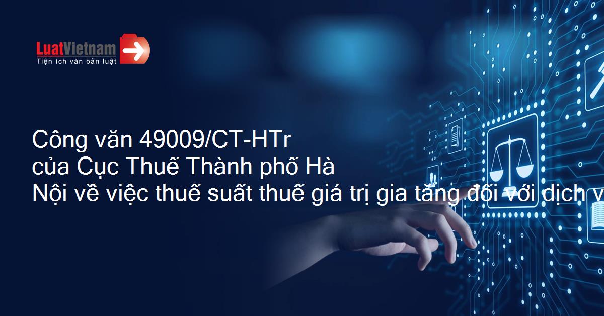 Công văn 49009/CT-HTr của Cục Thuế Thành phố Hà Nội về việc thuế suất thuế giá trị gia tăng đối với dịch vụ hỗ trợ làm kế hoạch bay tại tàu
