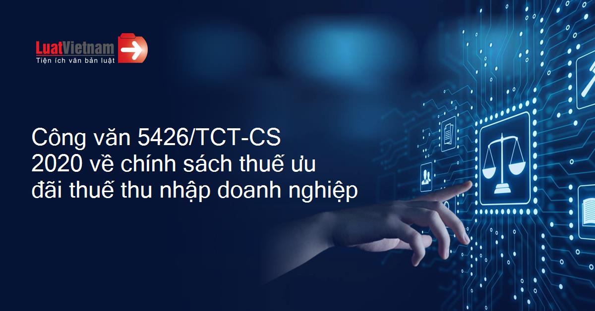 Công văn 5426/TCT-CS 2020 về chính sách thuế ưu đãi thuế thu nhập doanh nghiệp