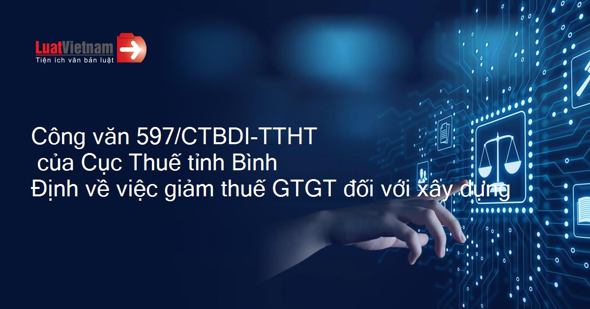 | Số:597/CTBDI-TTHT V/v giảm thuế GTGT đối với xây dựng.