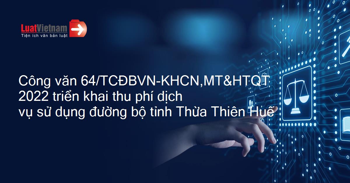 Công văn 64/TCĐBVN-KHCN,MT&HTQT 2022 triển khai thu phí dịch vụ sử dụng đường bộ tỉnh Thừa Thiên Huế