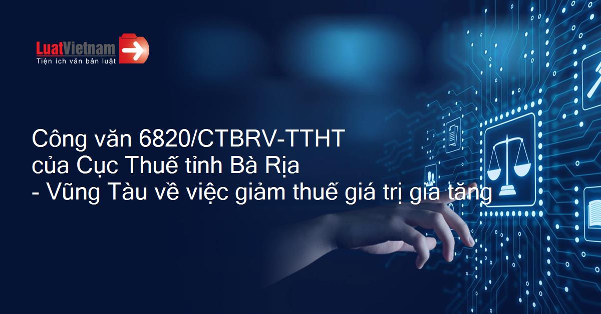 | Số hiệu: | 6820/CTBRV-TTHT | Ngày đăng công báo: | Đang cập nhật |