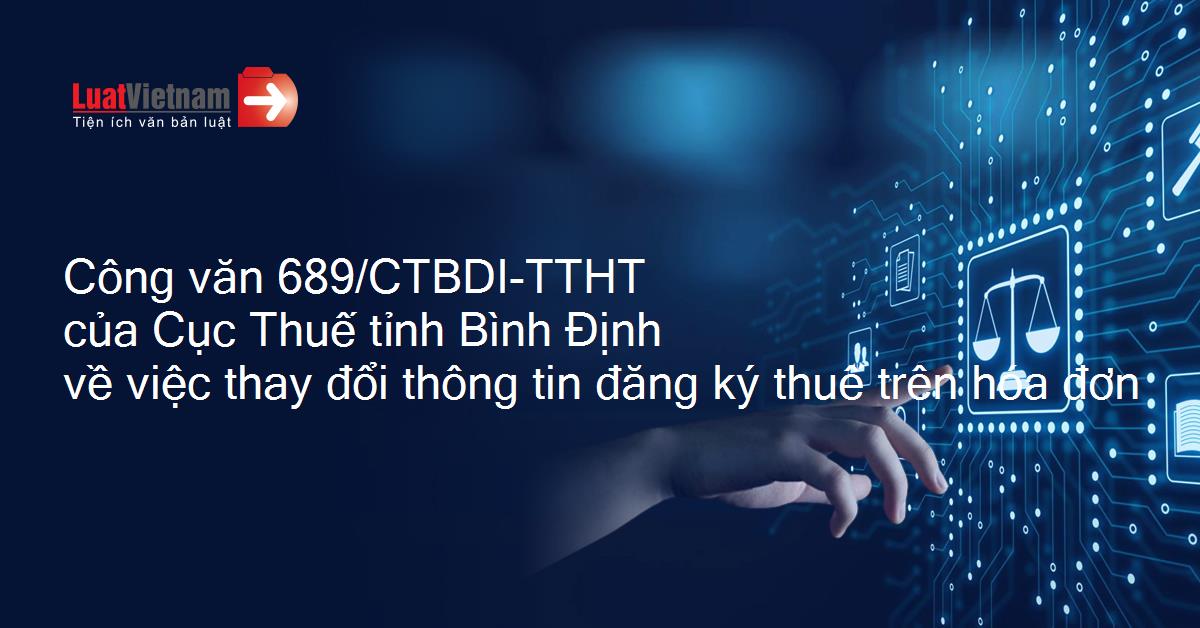 Công văn 689/CTBDI-TTHT của Cục Thuế tỉnh Bình Định về việc thay đổi thông tin đăng ký thuế trên hóa đơn