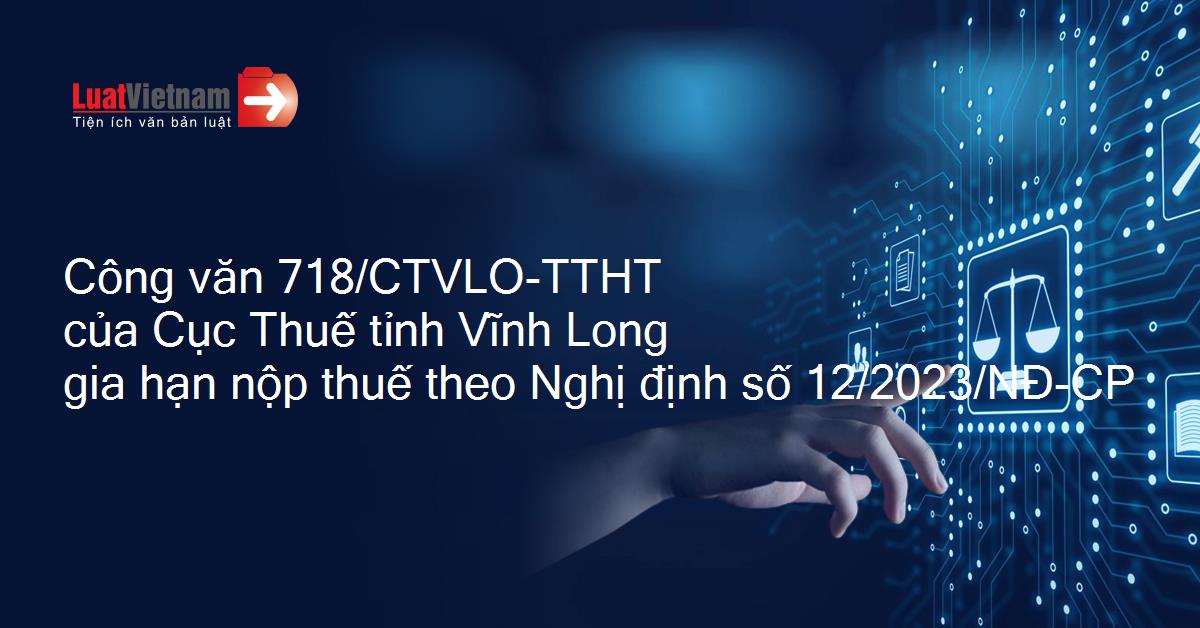 Công văn 718/CTVLO-TTHT của Cục Thuế tỉnh Vĩnh Long gia hạn nộp thuế theo Nghị định số 12/2023/NĐ-CP