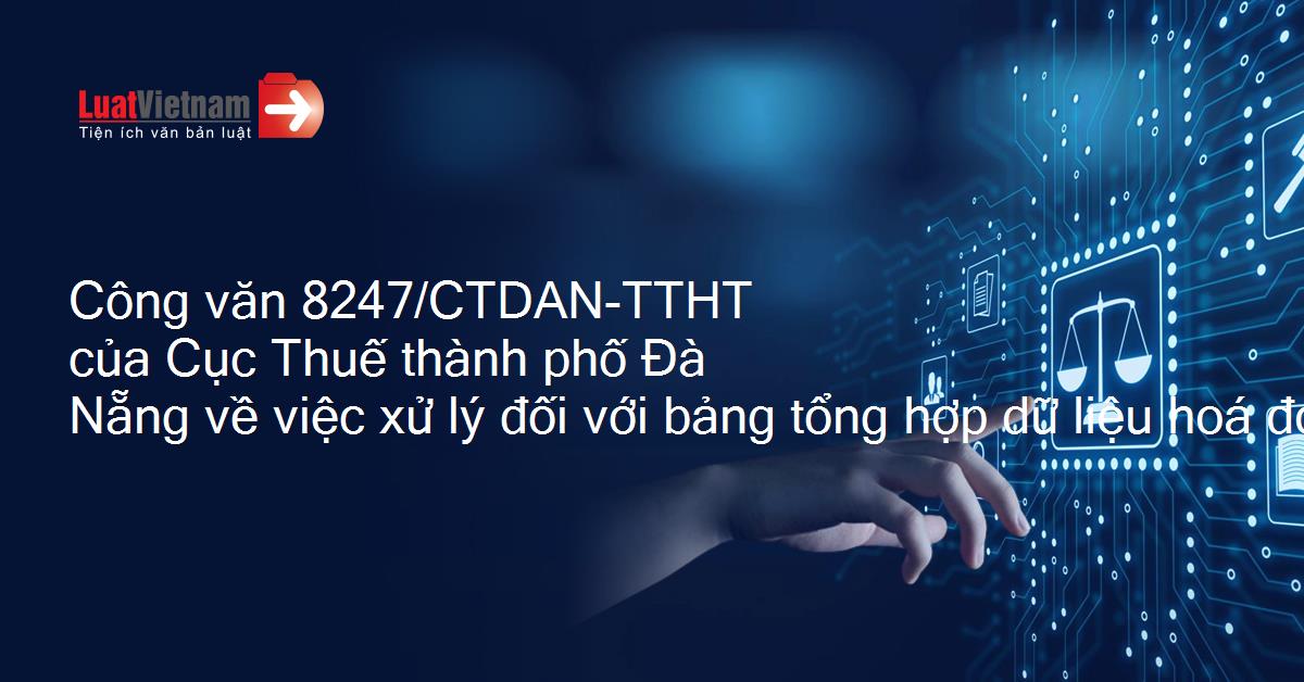 Công văn 8247/CTDAN-TTHT của Cục Thuế thành phố Đà Nẵng về việc xử lý đối với bảng tổng hợp dữ liệu hoá đơn điện tử có sai sót