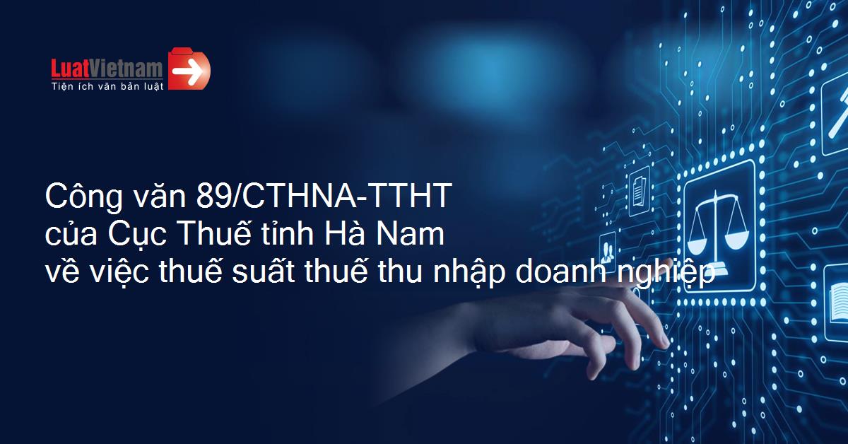 Công văn 89/CTHNA-TTHT của Cục Thuế tỉnh Hà Nam về việc thuế suất thuế thu nhập doanh nghiệp