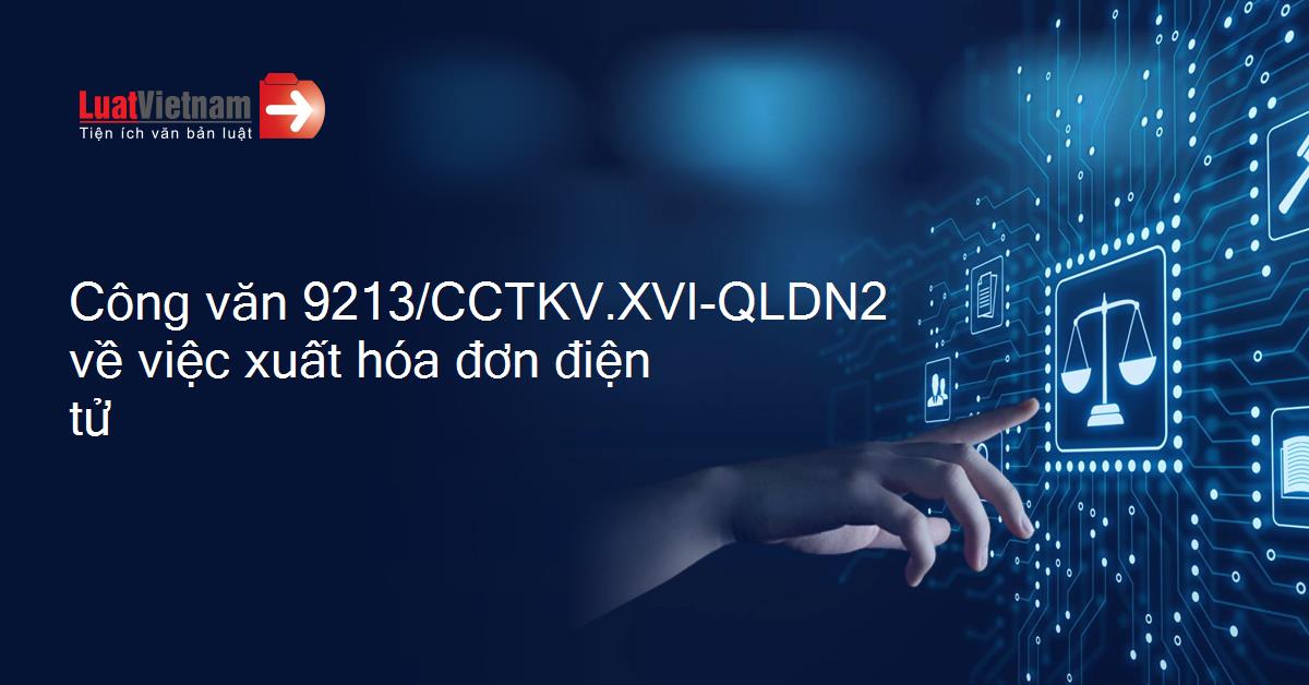 Công văn 9213/CCTKV.XVI-QLDN2 về việc xuất hóa đơn điện tử