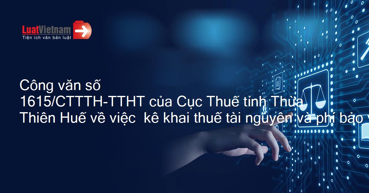 Công văn số 1615/CTTTH-TTHT của Cục Thuế tỉnh Thừa Thiên Huế về việc kê khai thuế tài nguyên và phí bảo vệ môi trường