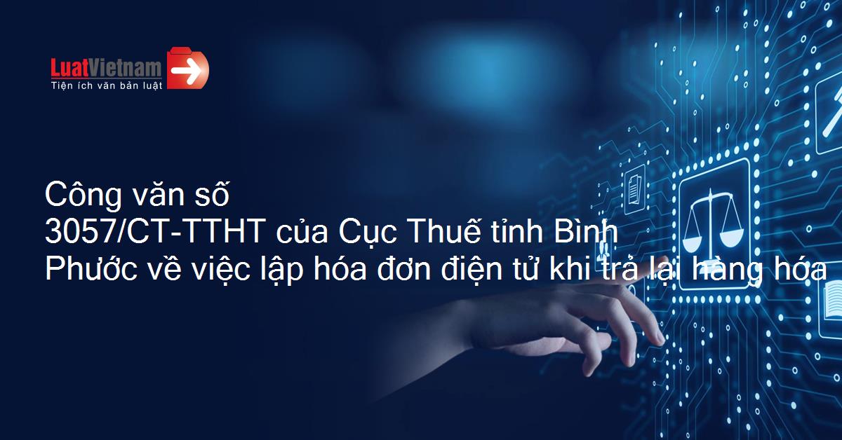 Công văn số 3057/CT-TTHT của Cục Thuế tỉnh Bình Phước về việc lập hóa đơn điện tử khi trả lại hàng hóa