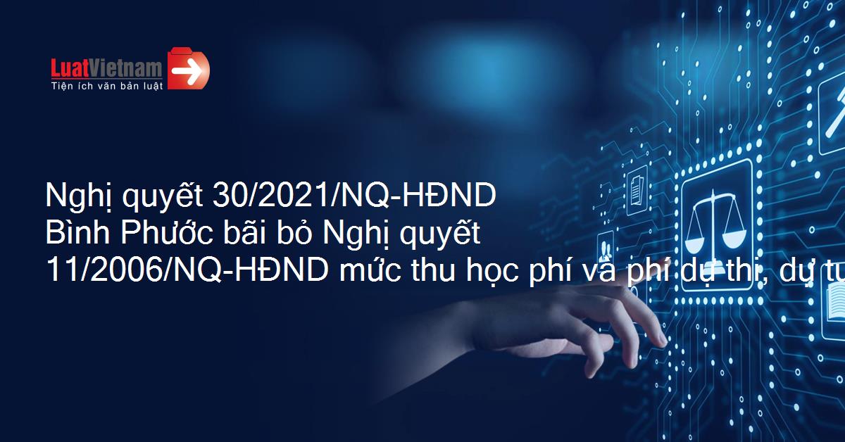 Nghị quyết 30/2021/NQ-HĐND Bình Phước bãi bỏ Nghị quyết 11/2006/NQ-HĐND mức thu học phí và phí dự thi, dự tuyển đào tạo nghề