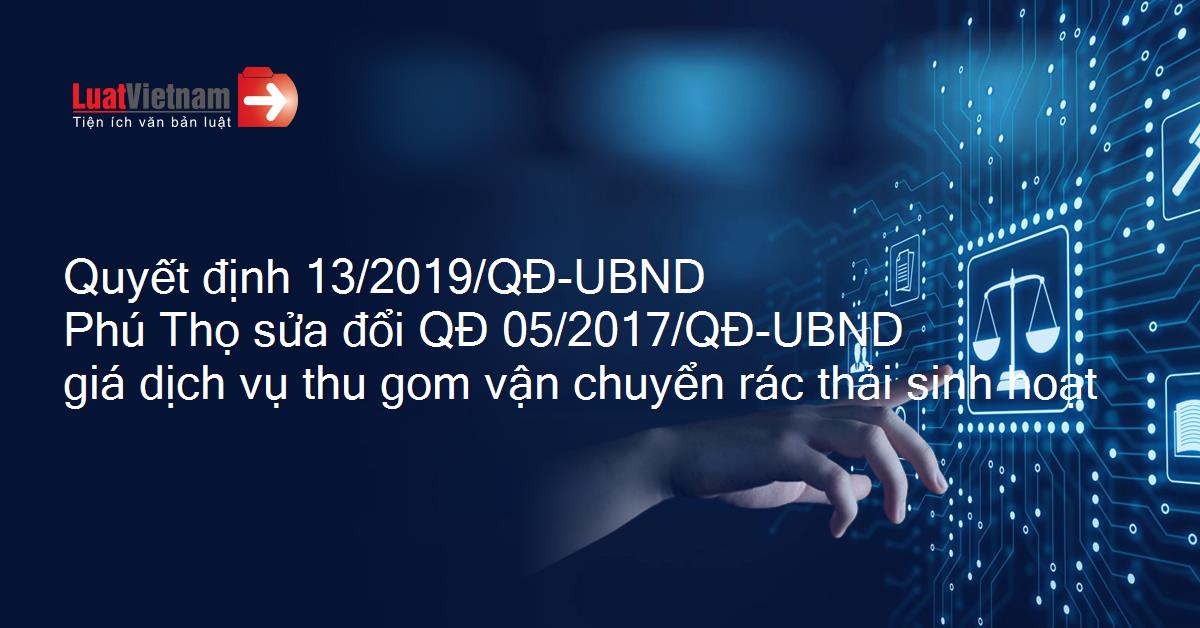 Quyết định 13/2019/QĐ-UBND Phú Thọ sửa đổi QĐ 05/2017/QĐ-UBND giá dịch vụ thu gom vận chuyển rác thải sinh hoạt