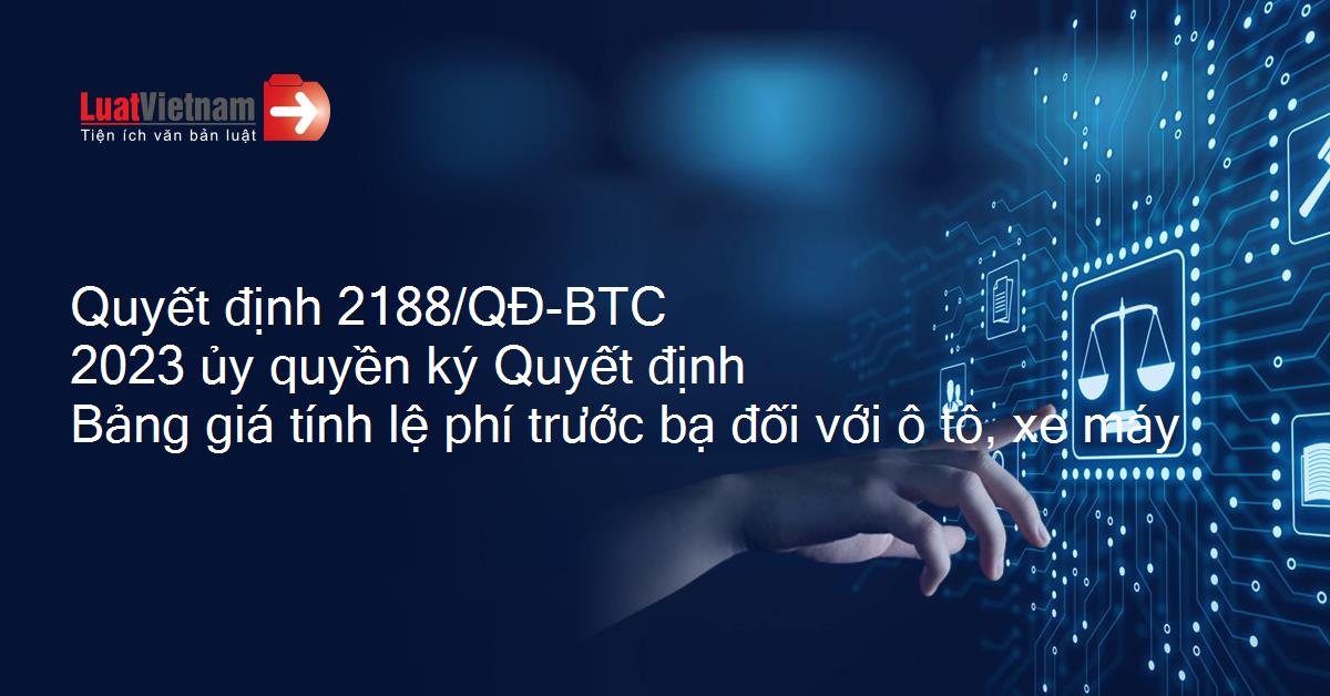 Ngày 10/10/2023, Bộ Tài chính ban hành Quyết định 2188/QĐ-BTC ủy quyền ký Quyết định về Bảng giá tính lệ phí trước bạ đối với ô tô, xe máy. Cụ thể: