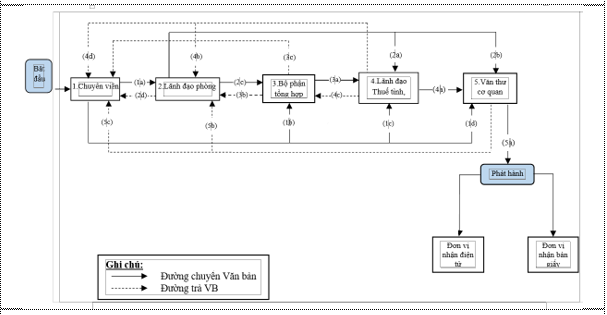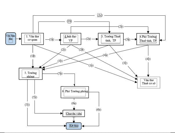 - Lãnh đạo Thuế tỉnh, thành phố phê duyệt tập tin điện tử, hồ sơ trình điện tử trên chương trình quản lý văn bản và điều hành, phê duyệt tờ trình, ký duyệt văn bản đi và chuyển Văn thư cơ quan.