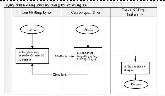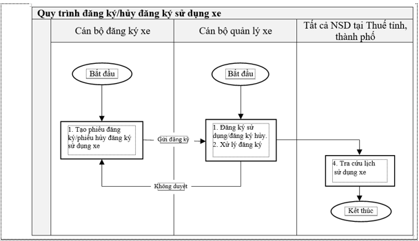 - Tất cả các công chức được truy cập Hệ thống Quản lý văn bản và điều hành có thể vào chương trình xem và tra cứu lịch bận rỗi xe để sắp xếp thực hiện công việc.b) Quy trình hủy đăng ký sử dụng xe