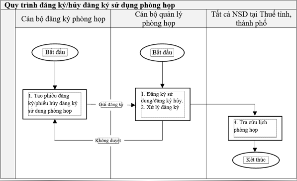 - Tất cả các công chức được truy cập Hệ thống Quản lý văn bản và điều hành có thể vào chương trình xem và tra cứu lịch bận rỗi phòng họp để sắp xếp thực hiện công việc.d) Quy trình hủy đăng ký sử dụng phòng họp